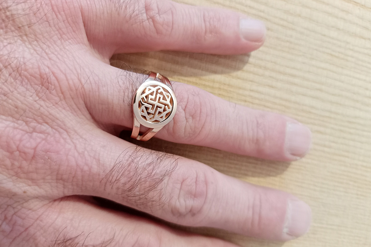 Обережное кольцо из золота со Славянскими символами