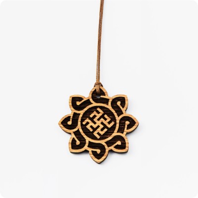 Подвеска пропитана вытяжкой древесного масла. Изделие можно использовать как для ношения на груди, так и как подвеску в транспортное средство.