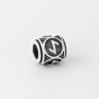 Шарм-бусина с руной Эваз из серебра